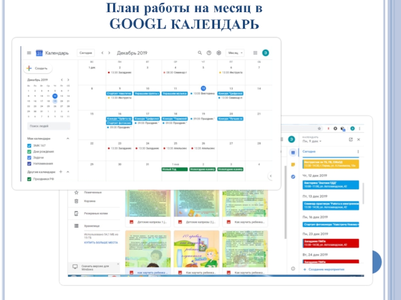 Слайд 9План работы на месяц в GOOGL КАЛЕНДАРЬ