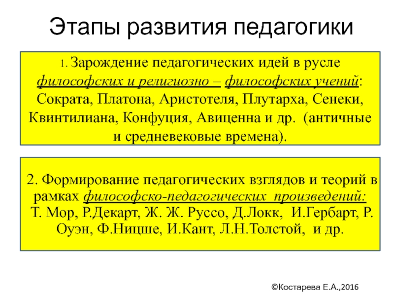 2. Формирование педагогических взглядов и теорий в рамках философско-педагогических произведений: Т. Мор, Р.Декарт, Ж. Ж. Руссо, Д.Локк, И.Гербарт, Р.Оуэн, Ф.Ницше, И.Кант, Л.Н.Толстой, и др.