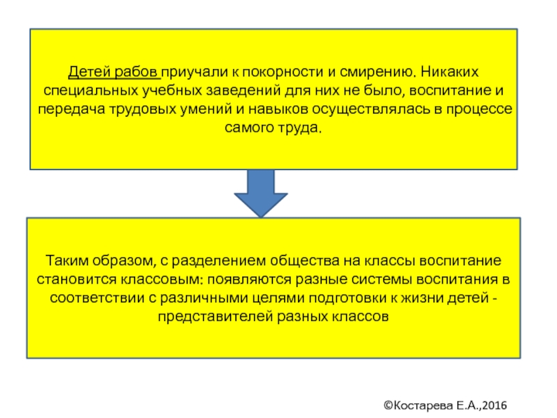 Таким образом, с разделением общества на классы воспитание становится классовым: появляются разные системы воспитания в соответствии с различными целями подготовки к жизни детей - представителей разных классов