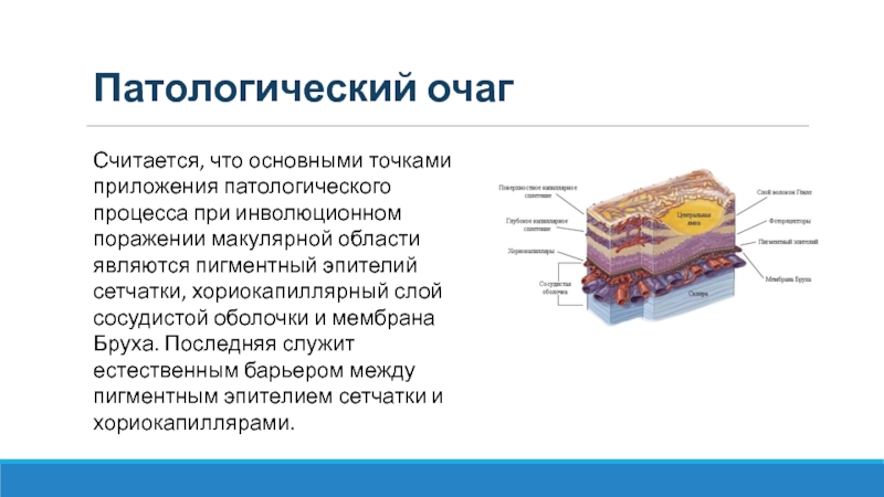 поражении макулярной области являются пигментный эпителий сетчатки, хориокапиллярный слой сосудистой