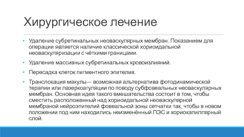 Удаление субретинальных неоваскулярных мембран. Показанием для операции является наличие
