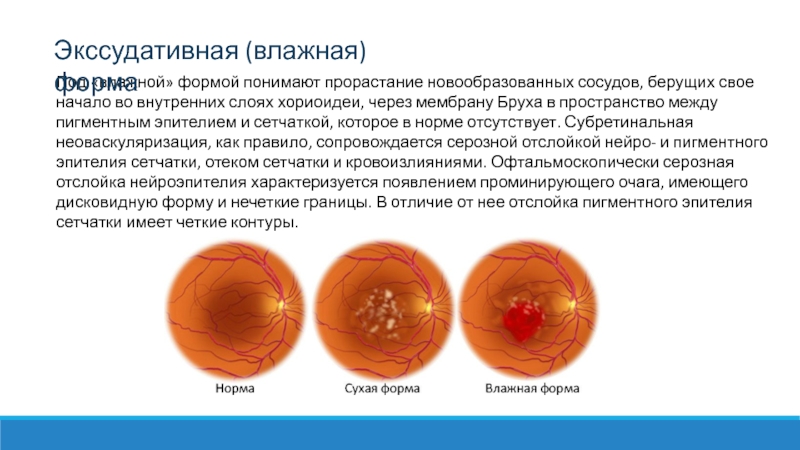 Слайд 12Под «влажной» формой понимают прорастание новообразованных сосудов, берущих свое начало