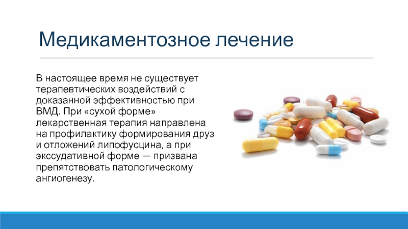 эффективностью при ВМД. При «сухой форме» лекарственная терапия направлена на