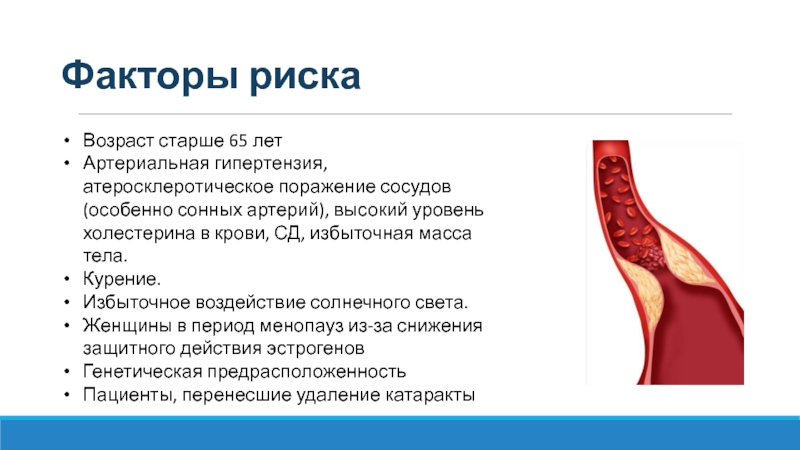 сонных артерий), высокий уровень холестерина в крови, СД, избыточная масса