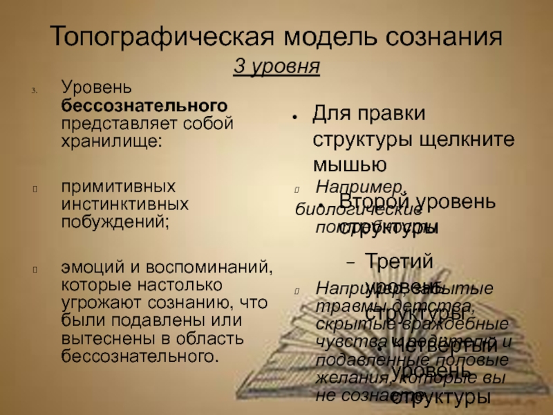 Например, забытые травмы детства, скрытые враждебные чувства к родителю и подавленные половые желания, которые вы не сознаете.