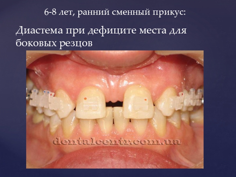 6-8 лет, ранний сменный прикус:Диастема при дефиците места для боковых резцов