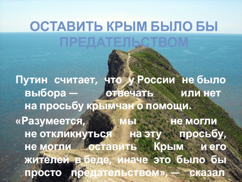 не могли оставить Крым и его жителей в беде, иначе это было бы просто предательством», — сказал он.