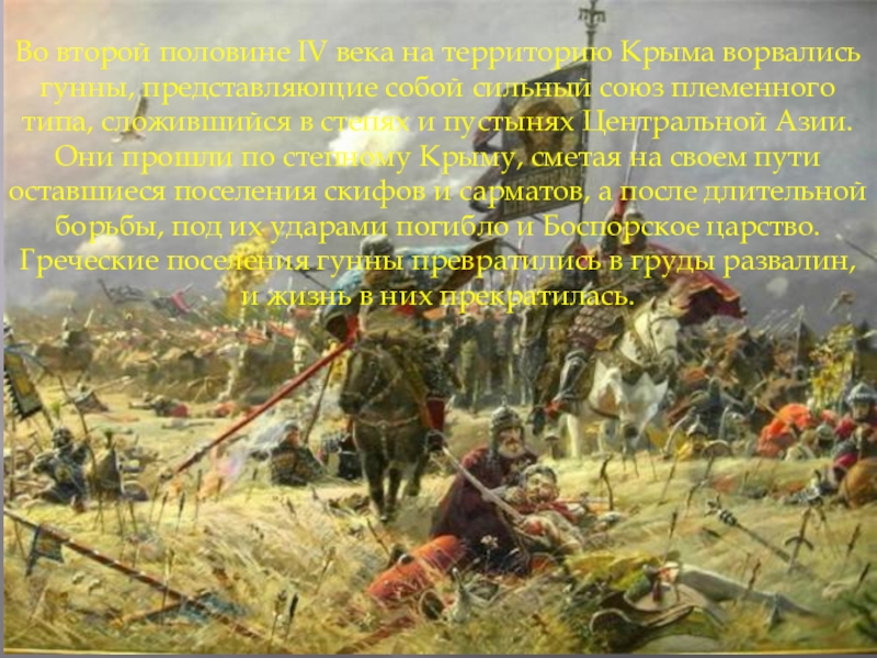 Слайд 6Во второй половине IV века на территорию Крыма ворвались гунны,