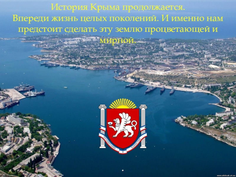 История Крыма продолжается. Впереди жизнь целых поколений. И именно нам предстоит сделать эту землю процветающей и мирной.