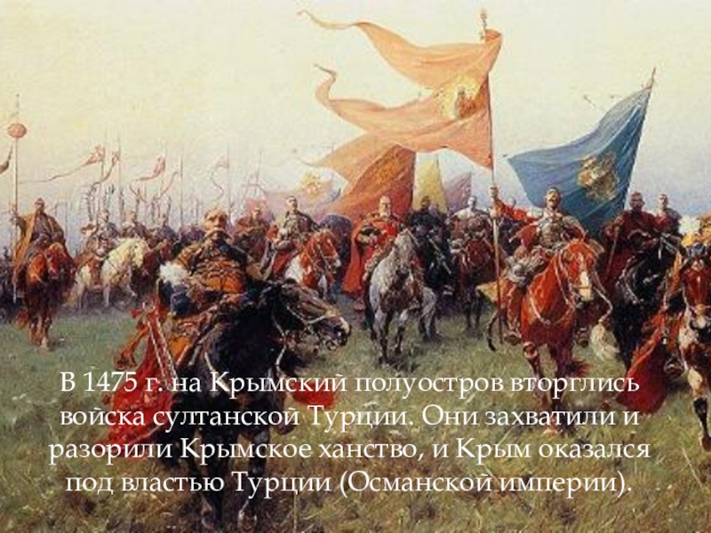 Слайд 7В 1475 г. на Крымский полуостров вторглись войска султанской Турции.