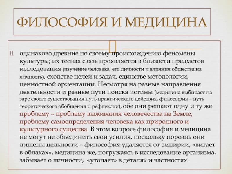 ФИЛОСОФИЯ И МЕДИЦИНА