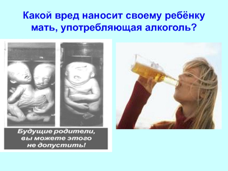 Слайд 13Какой вред наносит своему ребёнку мать, употребляющая алкоголь?