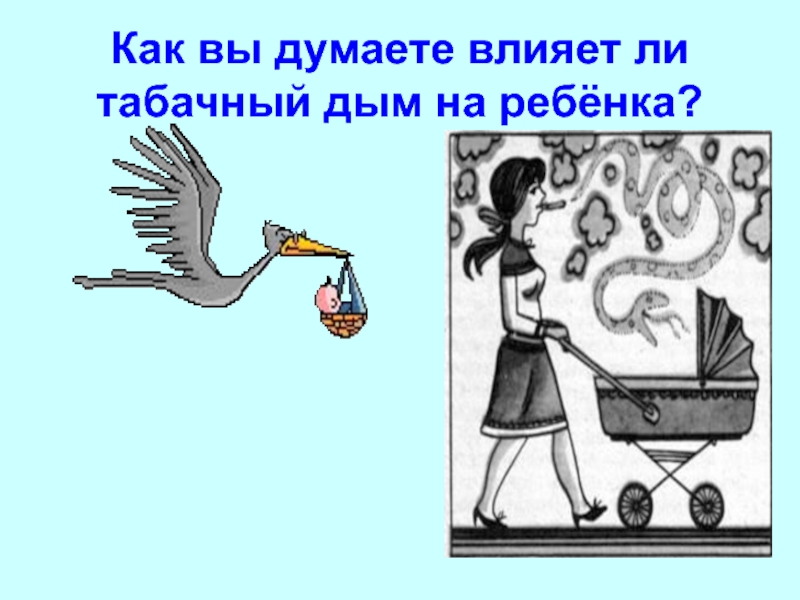 Слайд 10Как вы думаете влияет ли табачный дым на ребёнка?