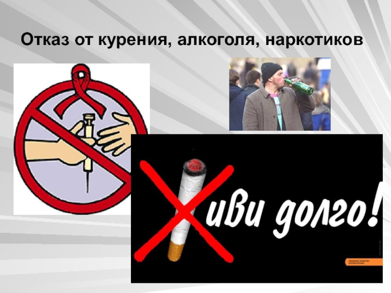 Слайд 17 Отказ от курения, алкоголя, наркотиков
