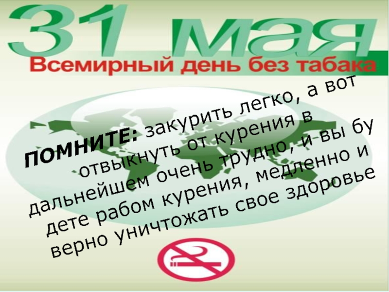 Слайд 6ПОМНИТЕ: закурить легко, а вот отвыкнуть от курения в дальнейшем