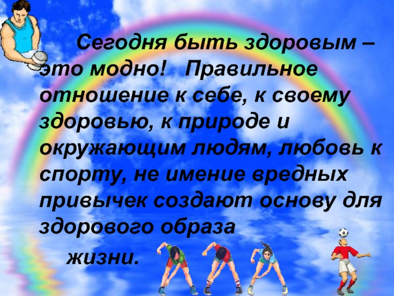 к природе и окружающим людям, любовь к спорту, не имение вредных привычек создают основу для здорового образа