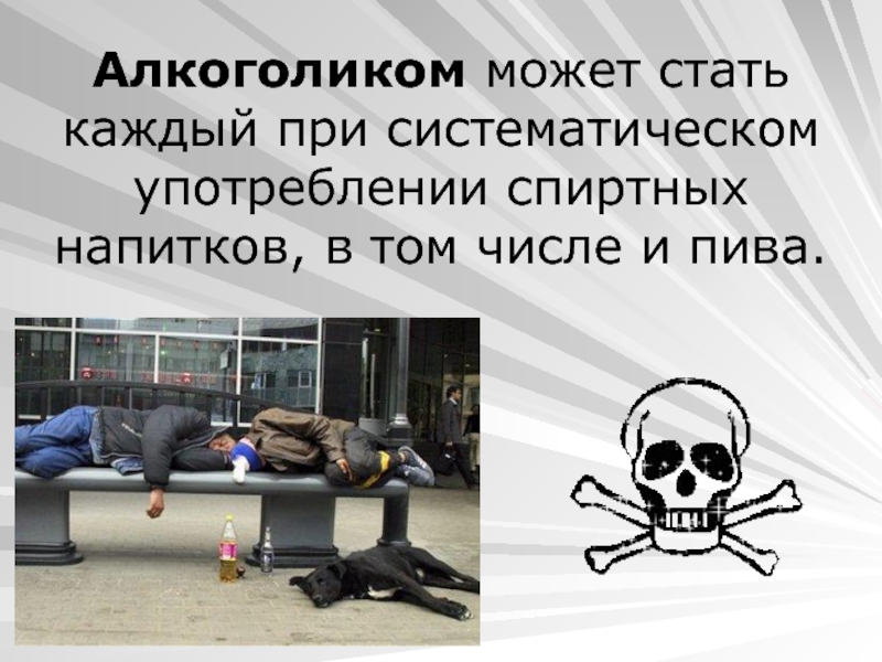Слайд 8Алкоголиком может стать каждый при систематическом употреблении спиртных напитков, в том