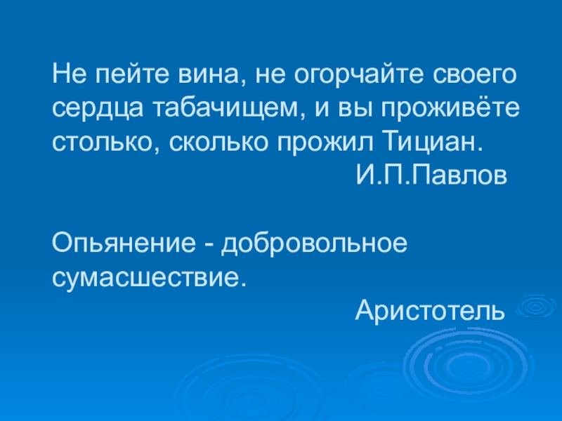 И.П.Павлов Опьянение - добровольное сумасшествие. Аристотель