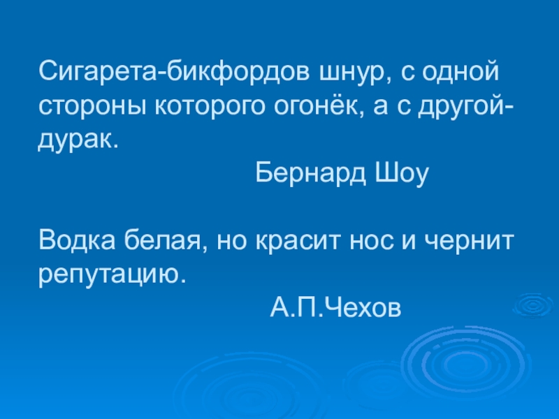 Слайд 3Сигарета-бикфордов шнур, с одной стороны которого огонёк, а с другой-дурак.