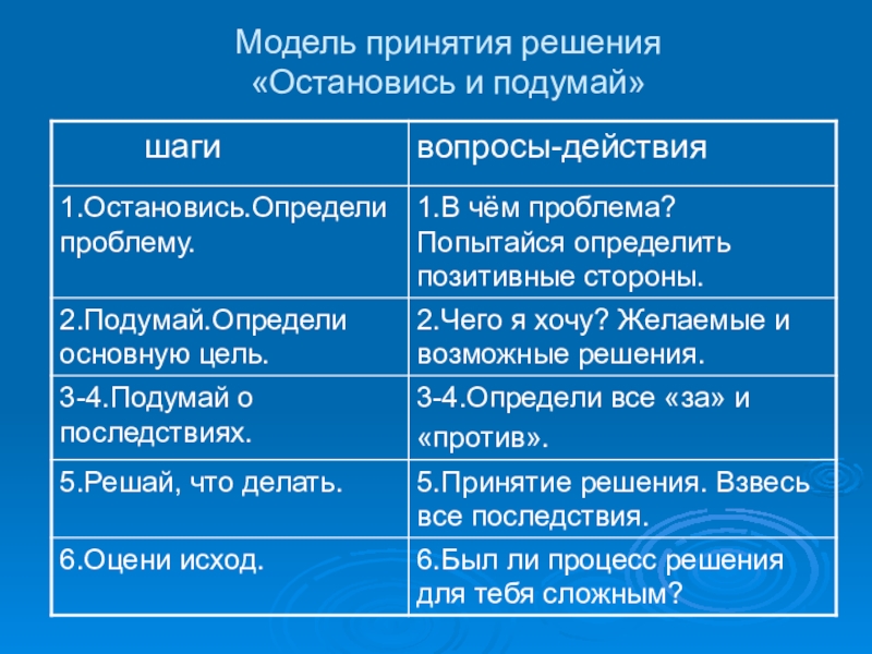 Слайд 12Модель принятия решения «Остановись и подумай»