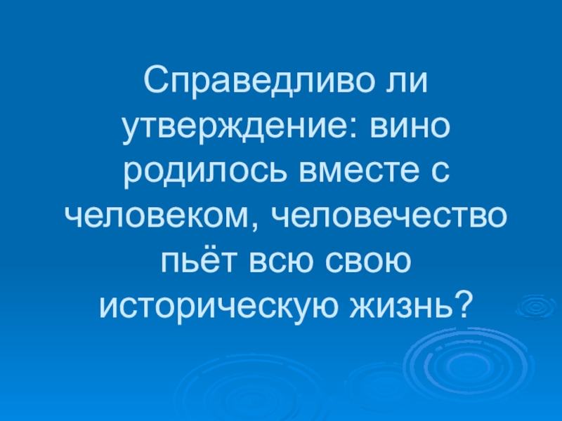 Слайд 8Справедливо ли утверждение: вино родилось вместе с человеком, человечество пьёт