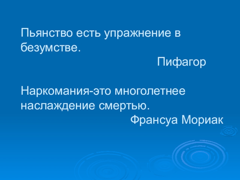 Пифагор Наркомания-это многолетнее наслаждение смертью. Франсуа Мориак