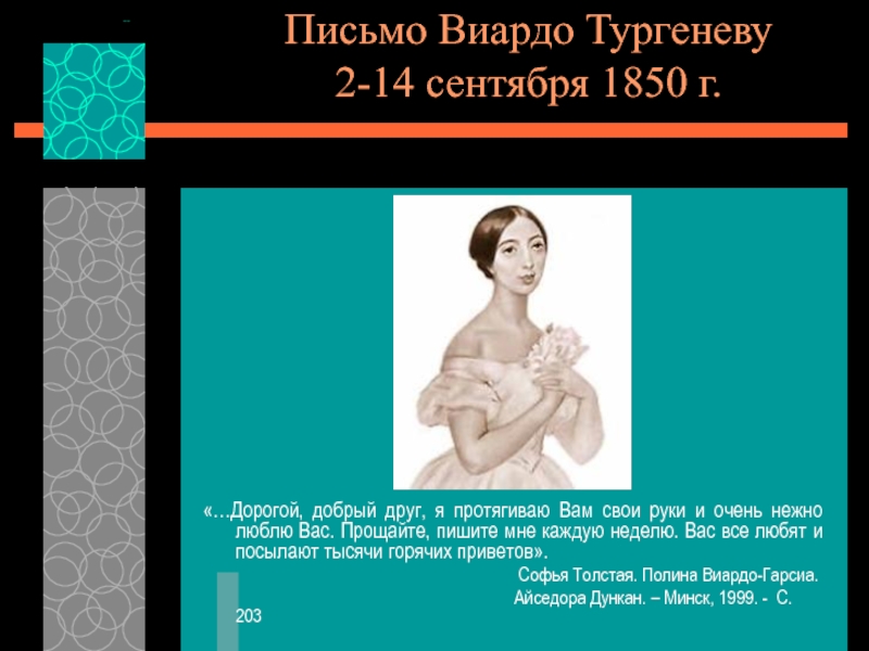 Слайд 15Письмо Виардо Тургеневу