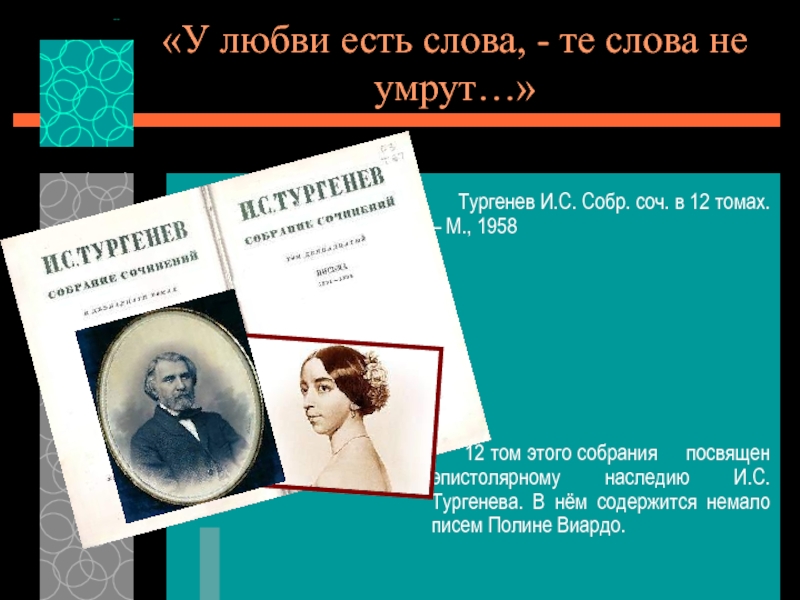 12 том этого собрания посвящен эпистолярному наследию И.С. Тургенева. В нём содержится немало писем Полине Виардо.