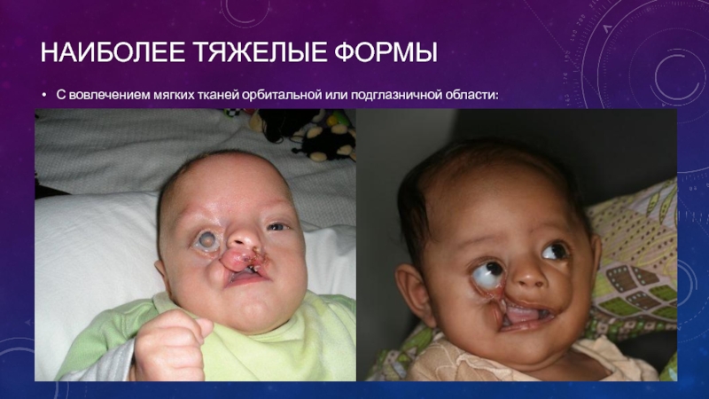 Наиболее тяжелые формыС вовлечением мягких тканей орбитальной или подглазничной области: