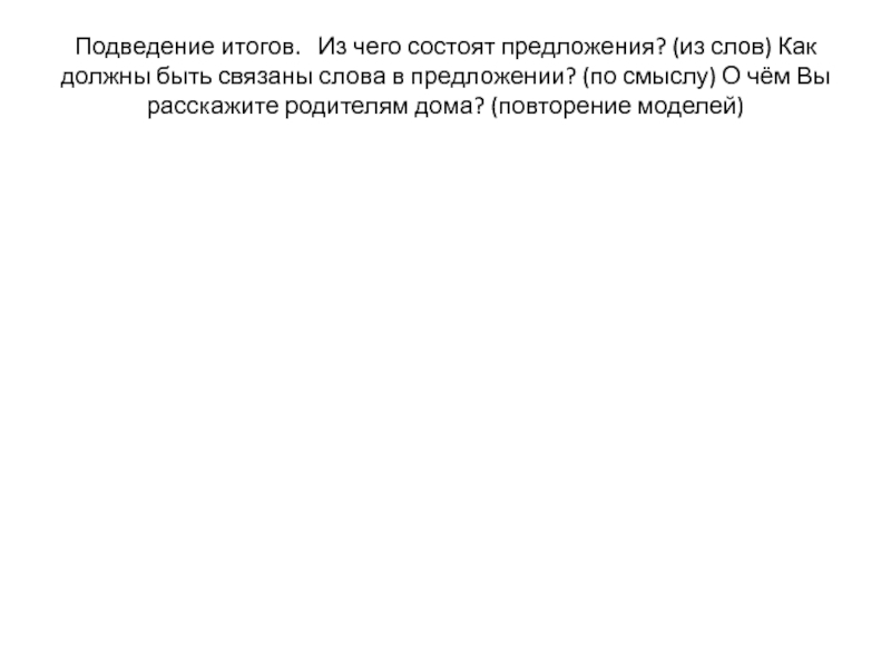 Какую модель мы используем для обозначения предложения? Какие общие признаки мы видим в тексте и в моделях? (Заглавная буква, точка)
