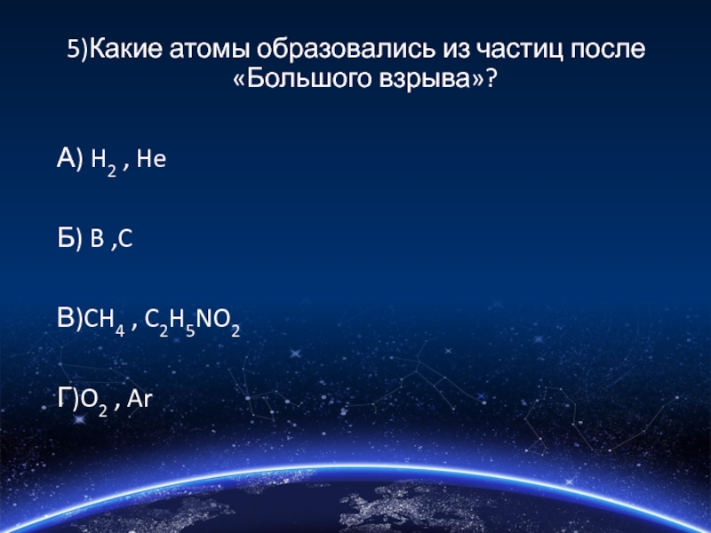 Слайд 75)Какие атомы образовались из частиц после «Большого взрыва»?