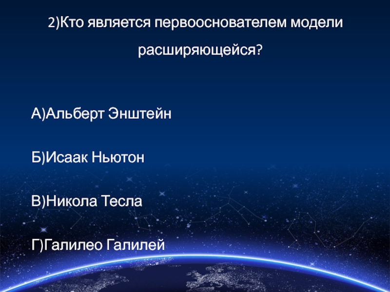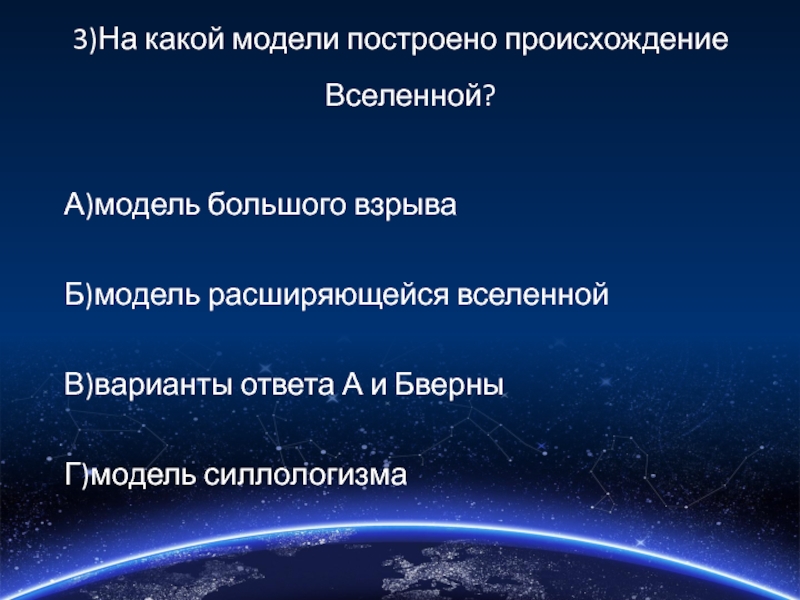 Слайд 53)На какой модели построено происхождение Вселенной?