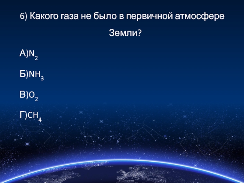 Слайд 86) Какого газа не было в первичной атмосфере Земли?