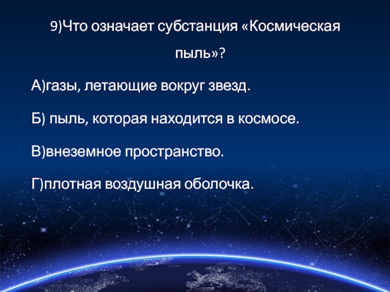 Слайд 119)Что означает субстанция «Космическая пыль»?