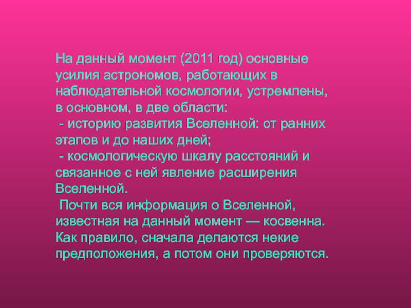 Слайд 5На данный момент (2011 год) основные усилия астрономов, работающих в