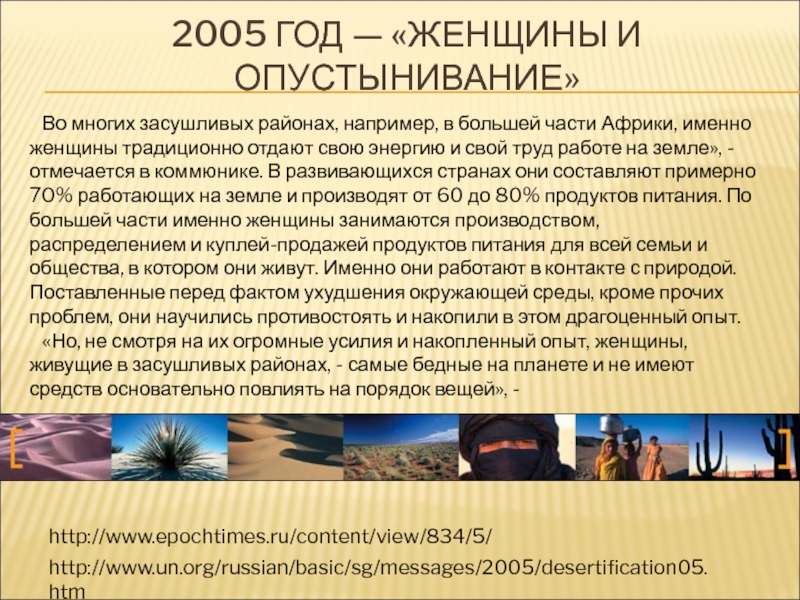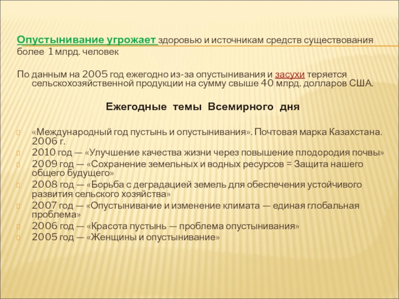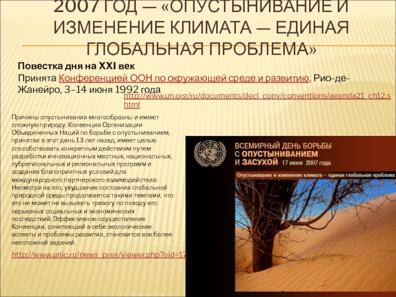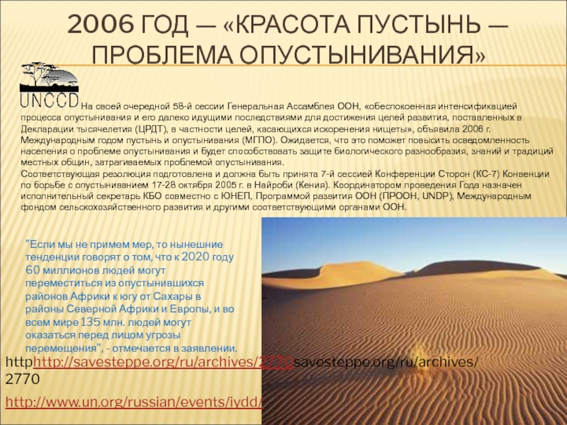 с которыми сталкивается человечество. Это — глобальная проблема, затрагивающая одну пятую часть населения мира в более чем 100 странах.Всемирная Конвенция по борьбе с опустыниванием