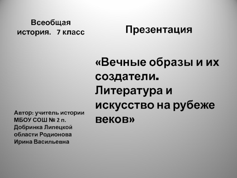Автор: учитель истории МБОУ СОШ № 2 п. Добринка Липецкой области Родионова Ирина Васильевна