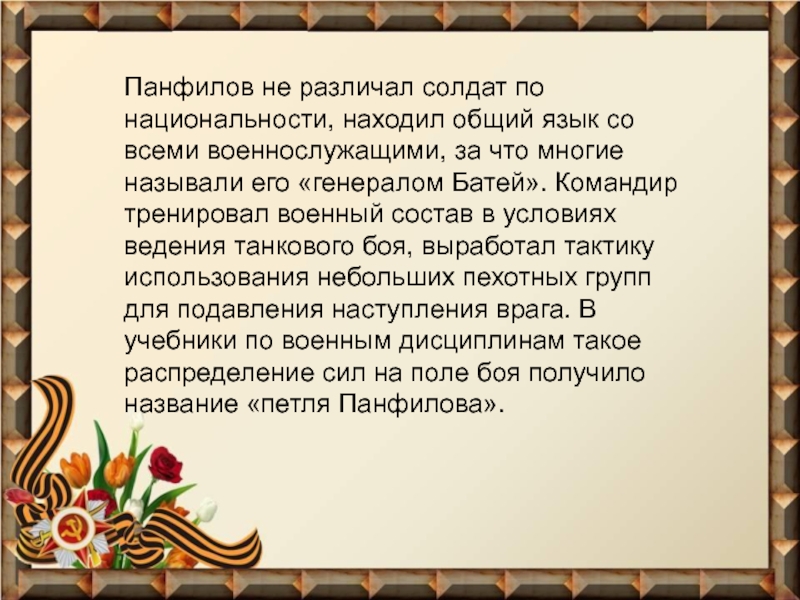 Слайд 16Панфилов не различал солдат по национальности, находил общий язык со