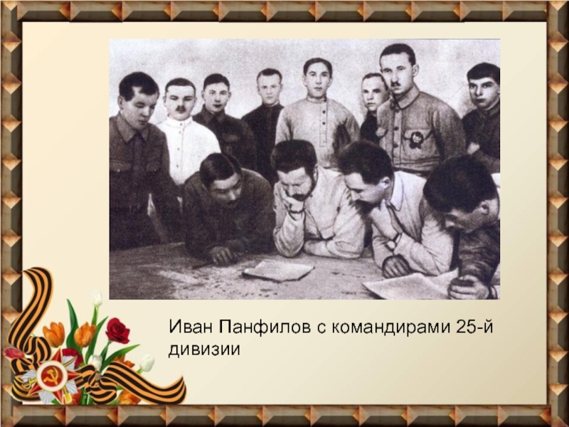 Слайд 4Иван Панфилов с командирами 25-й дивизии