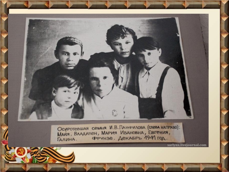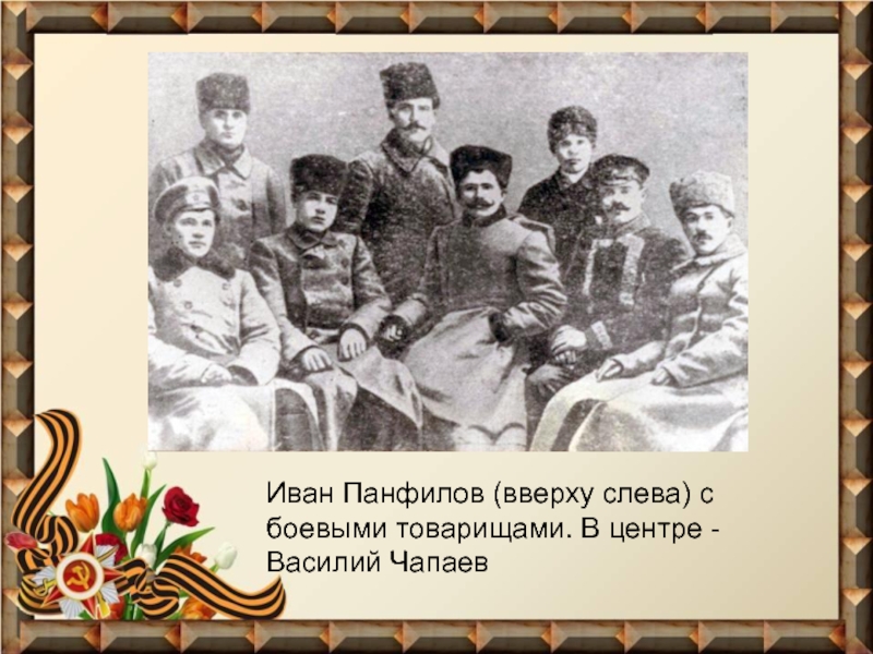 Слайд 5Иван Панфилов (вверху слева) с боевыми товарищами. В центре -
