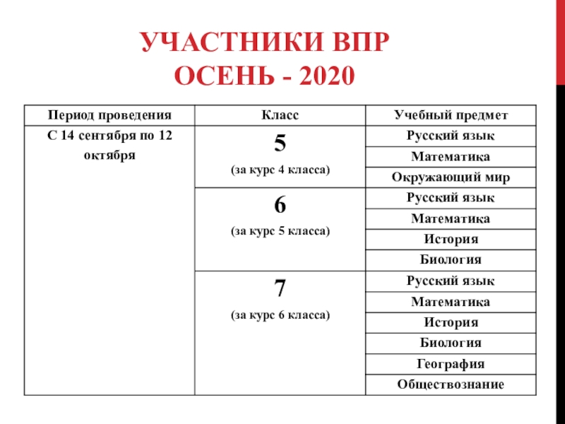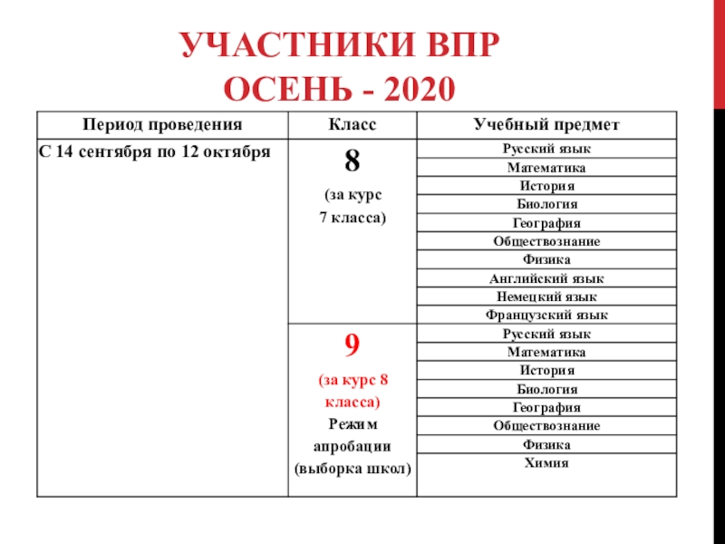 предметам на 2020/2021 учебный год.Сроки проведения– 14 сентября – 12 октября