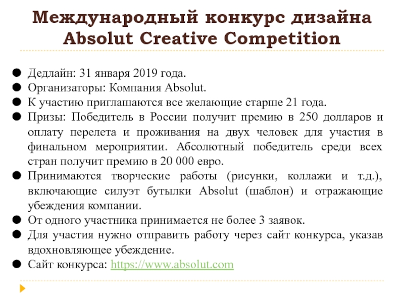 Слайд 5Международный конкурс дизайна Absolut Creative Competition