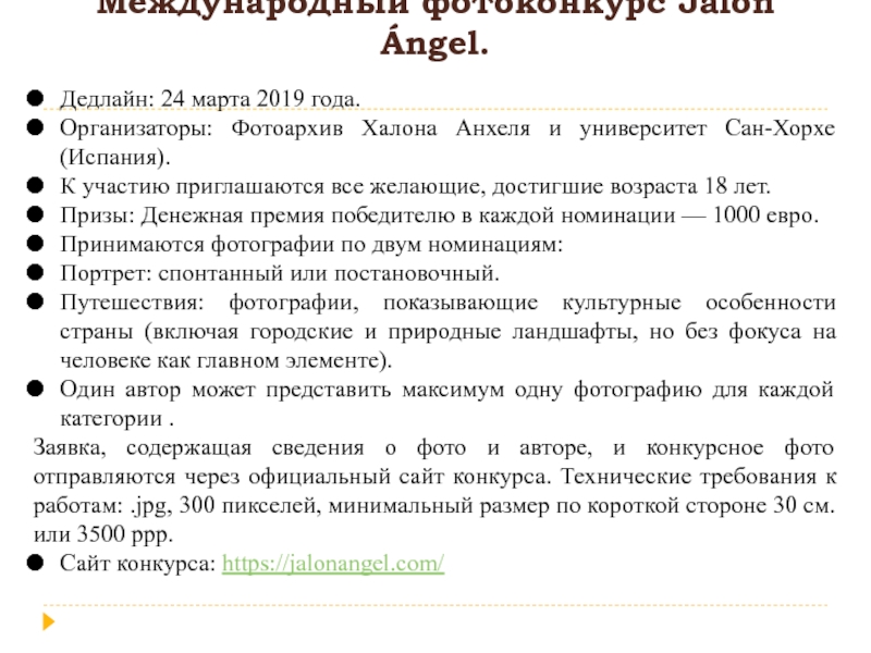 Слайд 36Международный фотоконкурс имени Феликса Шоллера