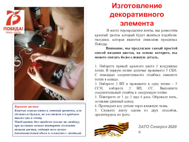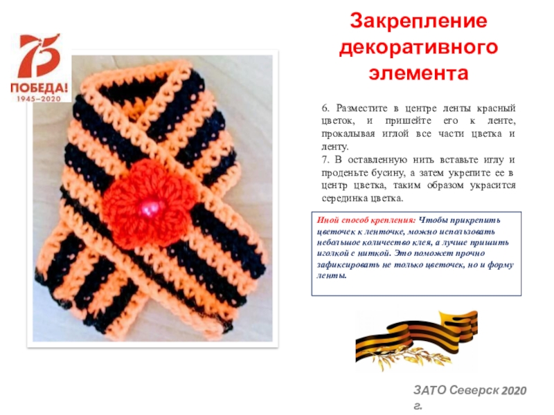 По желанию, на ленточке можно увеличивать длину ряда, тогда завершение ее будет заостренное, но это более сложный вариант и требует определенных навыков.