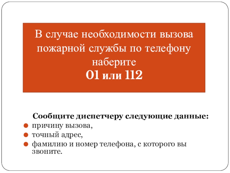Вызовите пожарных по телефону 01 или