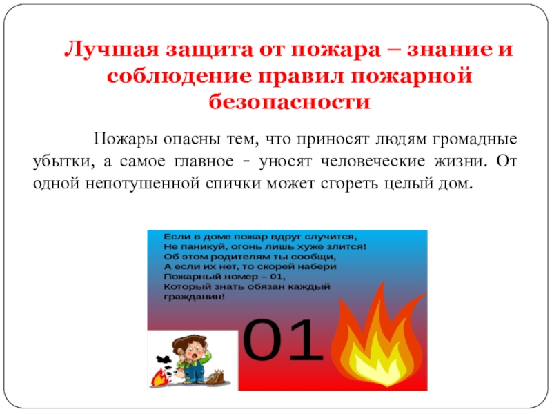 Слайд 8Лучшая защита от пожара – знание и соблюдение правил пожарной