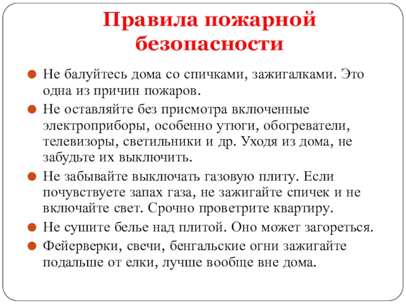 Слайд 9Правила пожарной безопасности