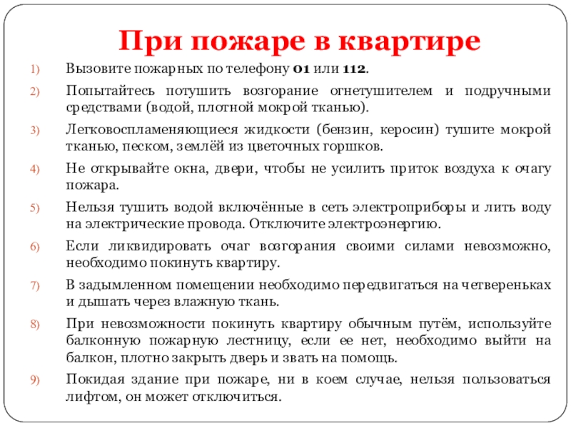 Слайд 11При пожаре в квартире