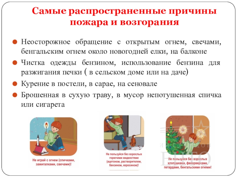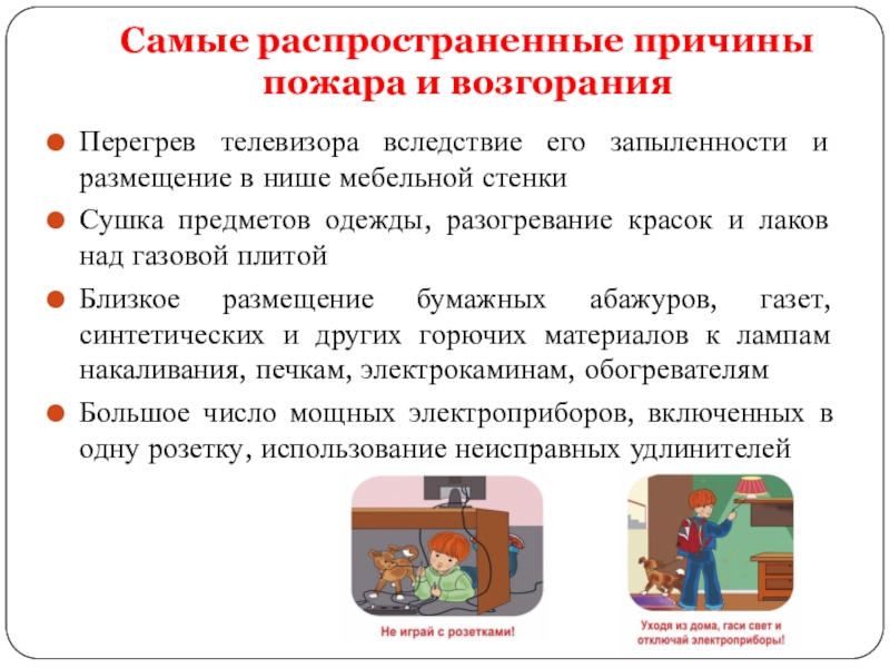 Слайд 7Самые распространенные причины пожара и возгорания