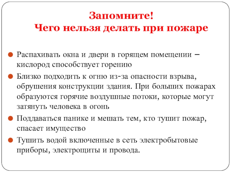 Чего нельзя делать при пожаре